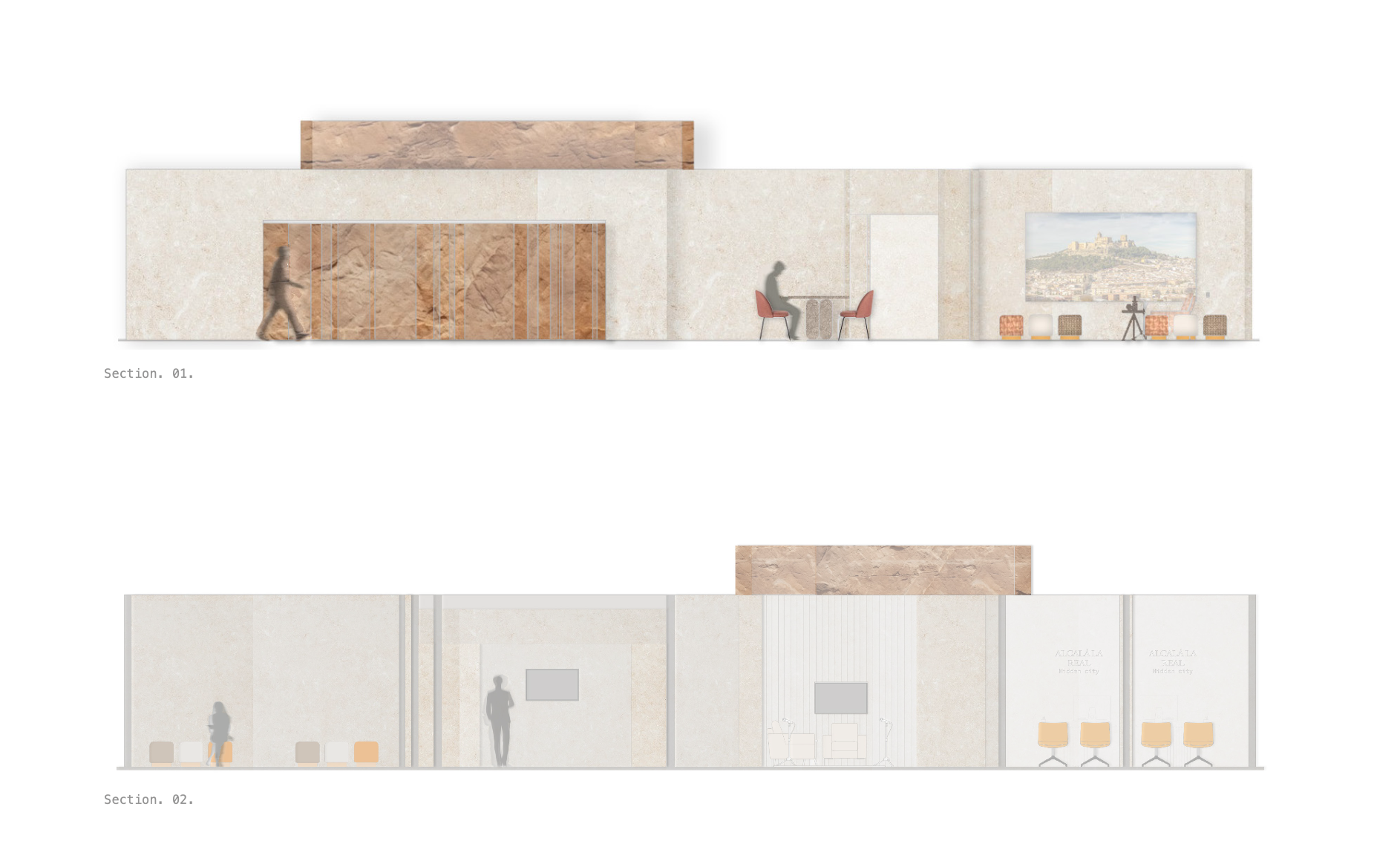The design of the stand is inspired by the idea of the “Hidden City”, a representation of the rich history and mystery surrounding the Fortaleza de la Mota in Alcalá la Real.