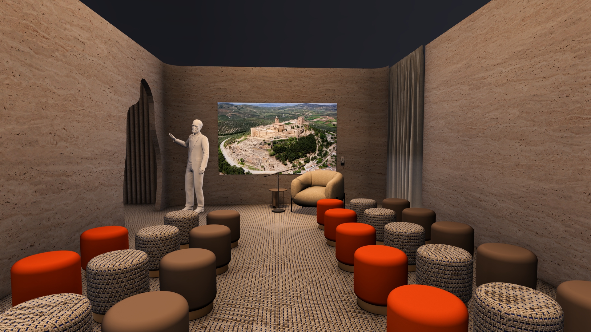 To this end, the design is inspiredby the curved and dynamic silhouette of the fortress, which is embodied in an enveloping space that recreates a wall. The hidden spaces and sinuous shapes of the design encourage interaction and a sense of discovery, making visitors feel immersed in the historical narrative of Alcalá la Real.