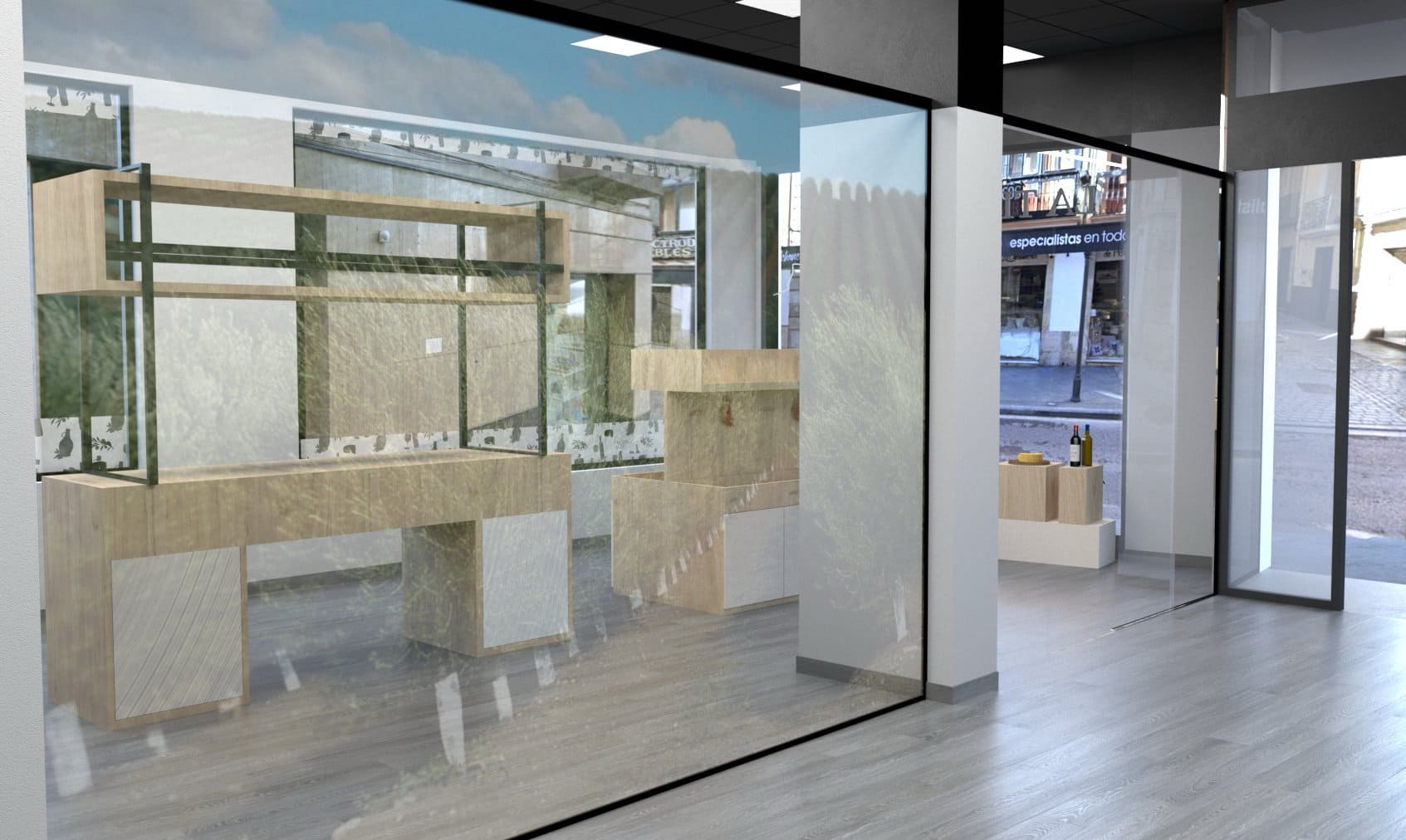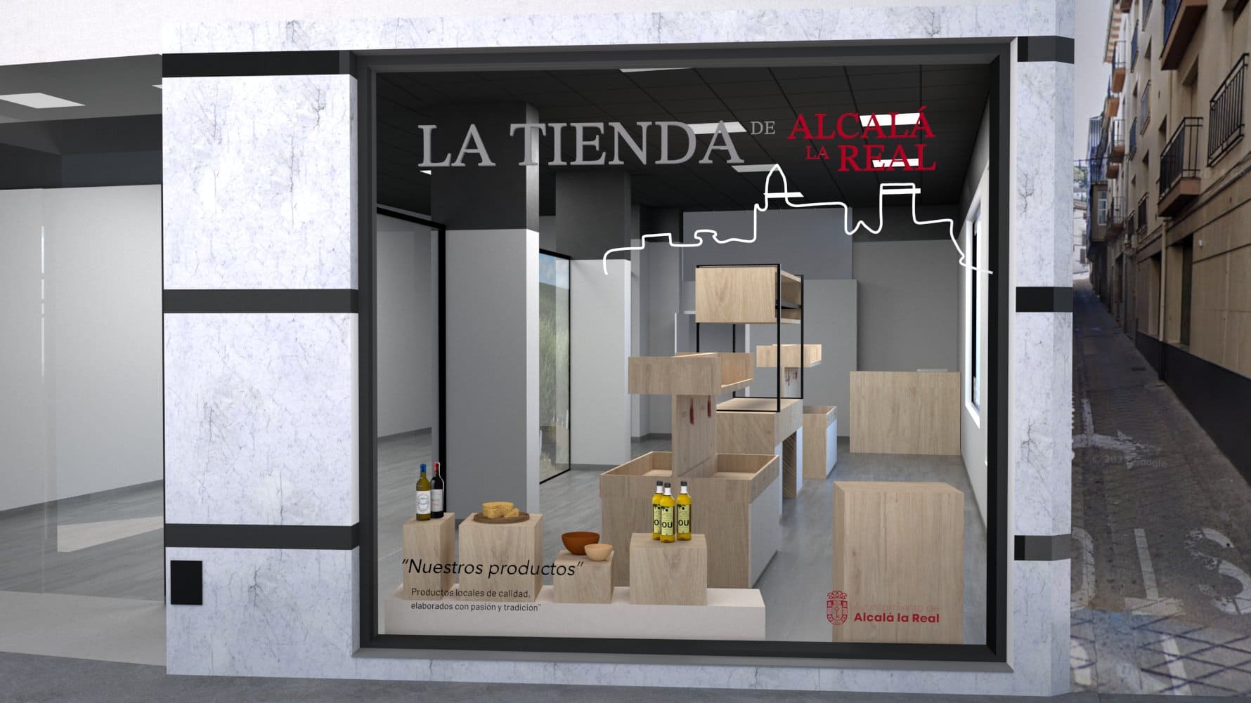 During my internship, I developed a project focused on the design of a store dedicated to products from Alcalá la Real. I was responsible for the furniture design and for creating visual imagery that clearly illustrates the evolution and materialization of the project throughout its real execution.